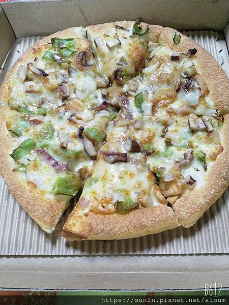披薩有章魚及海鮮口味 :照燒章魚礁溪夜市這樣吃甜甜的口感;海鮮口味,單純的海鮮起司,油亮口感;